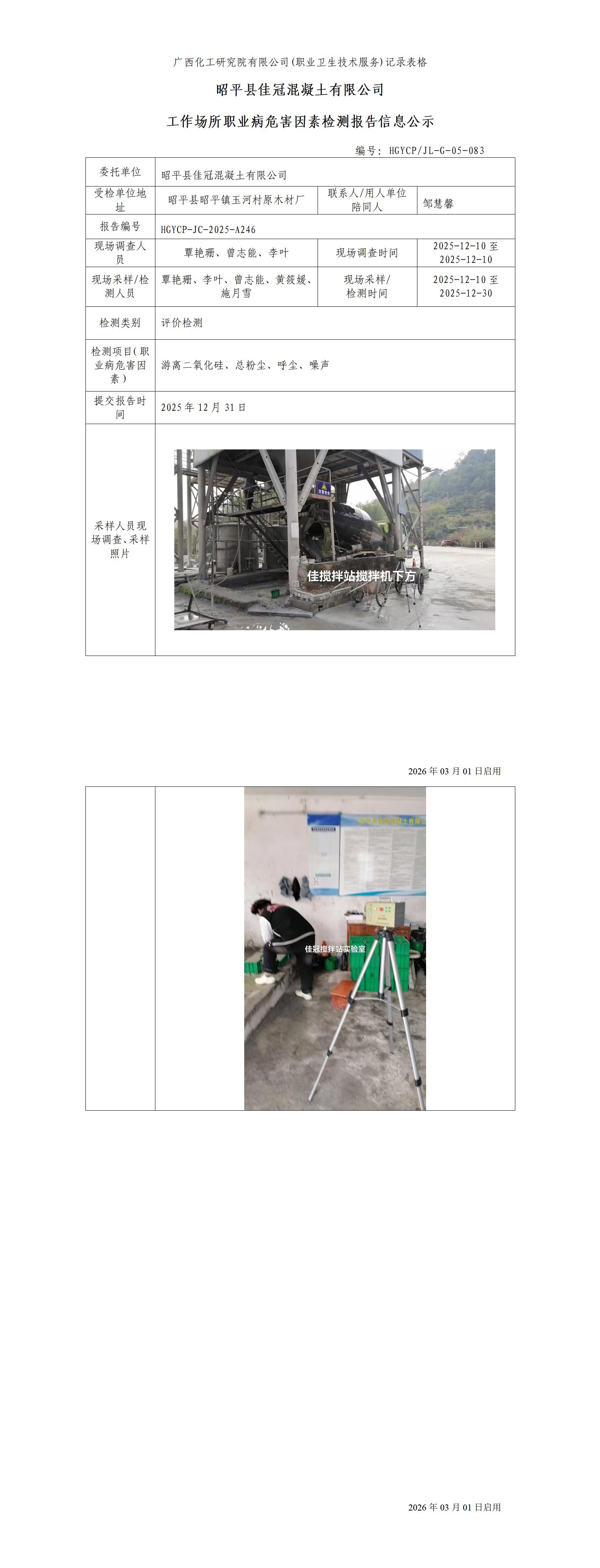 昭平县佳冠混凝土有限公司工作场所职业病危害因素检测报告信息公示